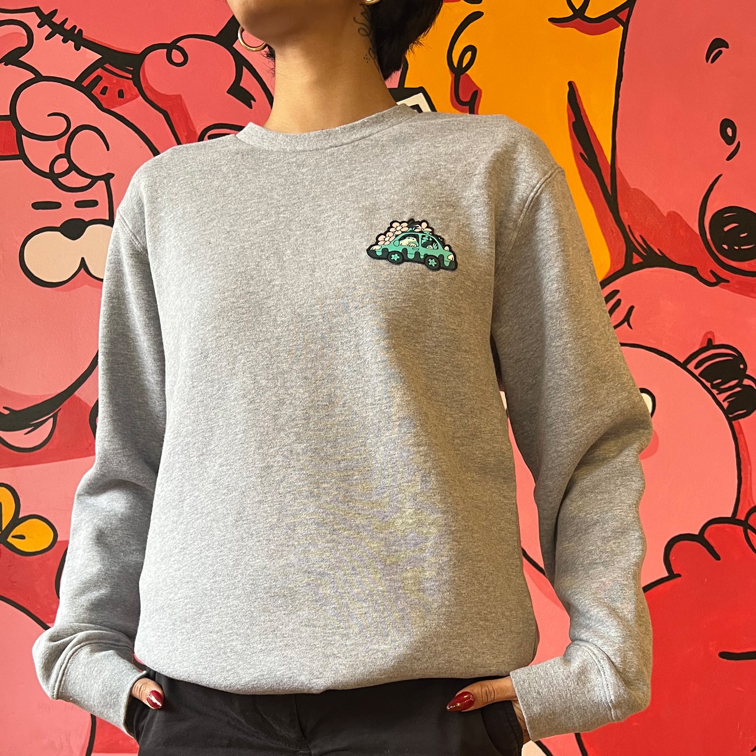Garden Car patch crewneck fleece sweater grey