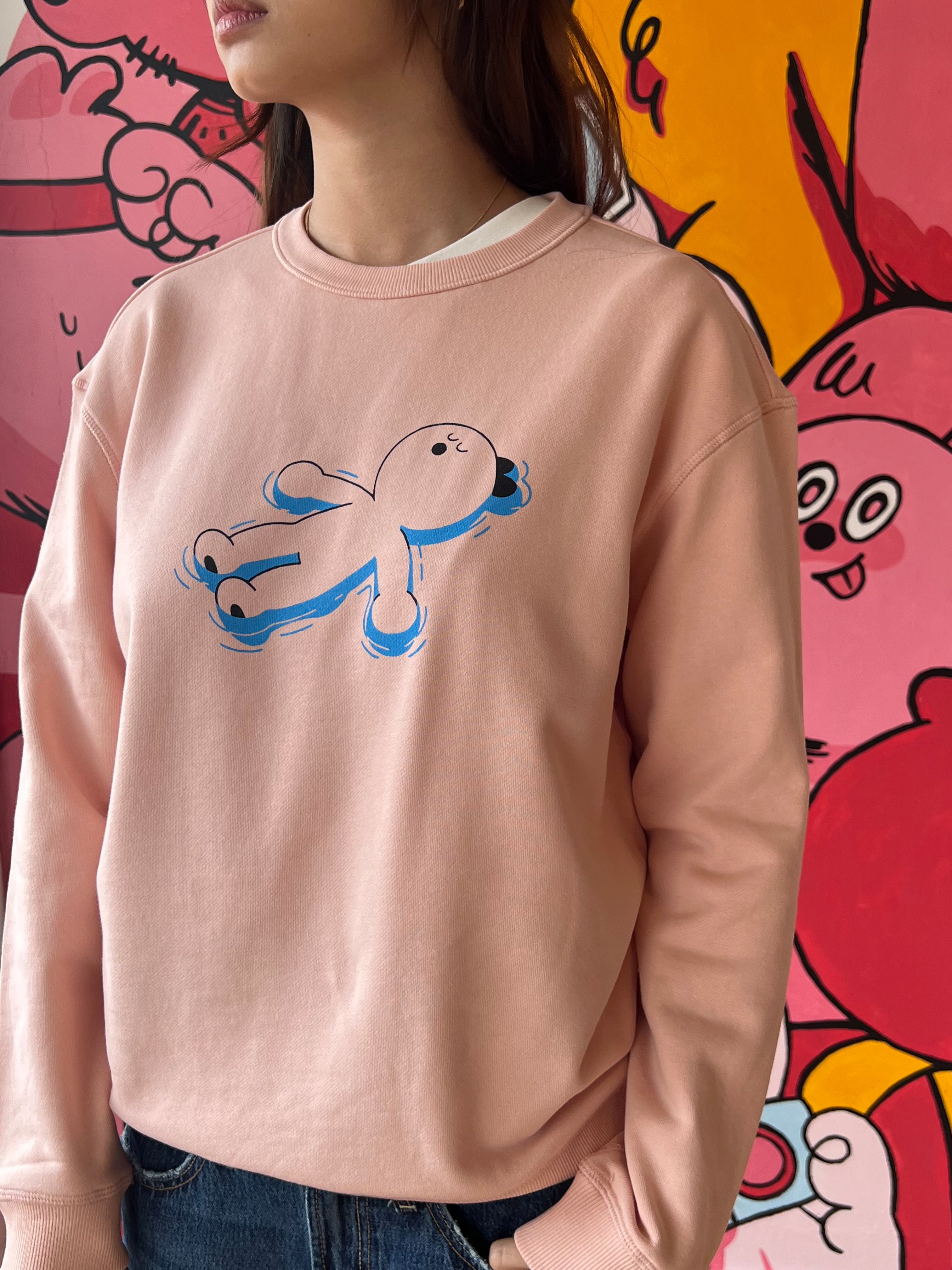 100% Cotton French Terry heavy weight sweater in soft pink.