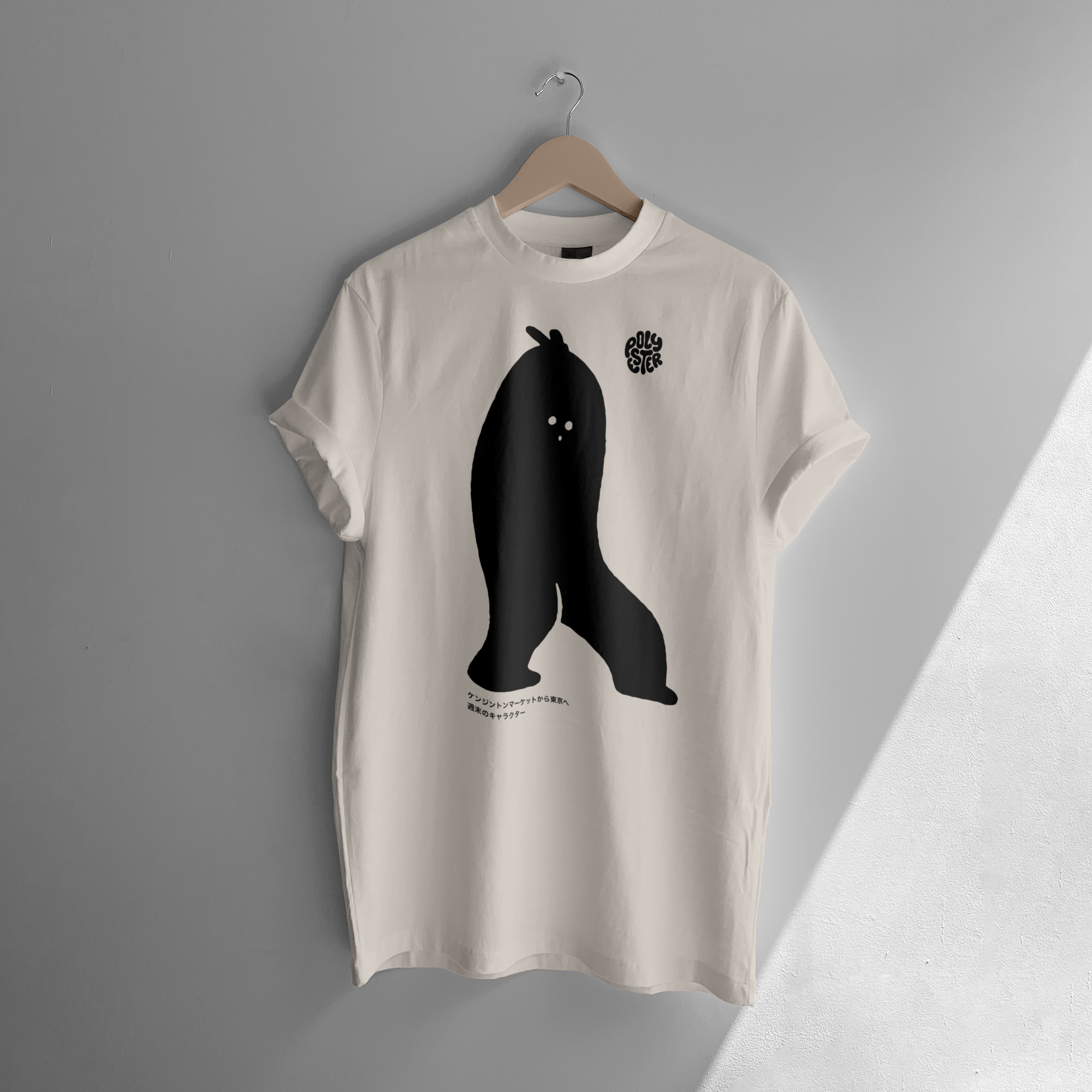 Blueish Grey and Bone T-Shirt colour options with our Sasquatch and Polyester studio logo.