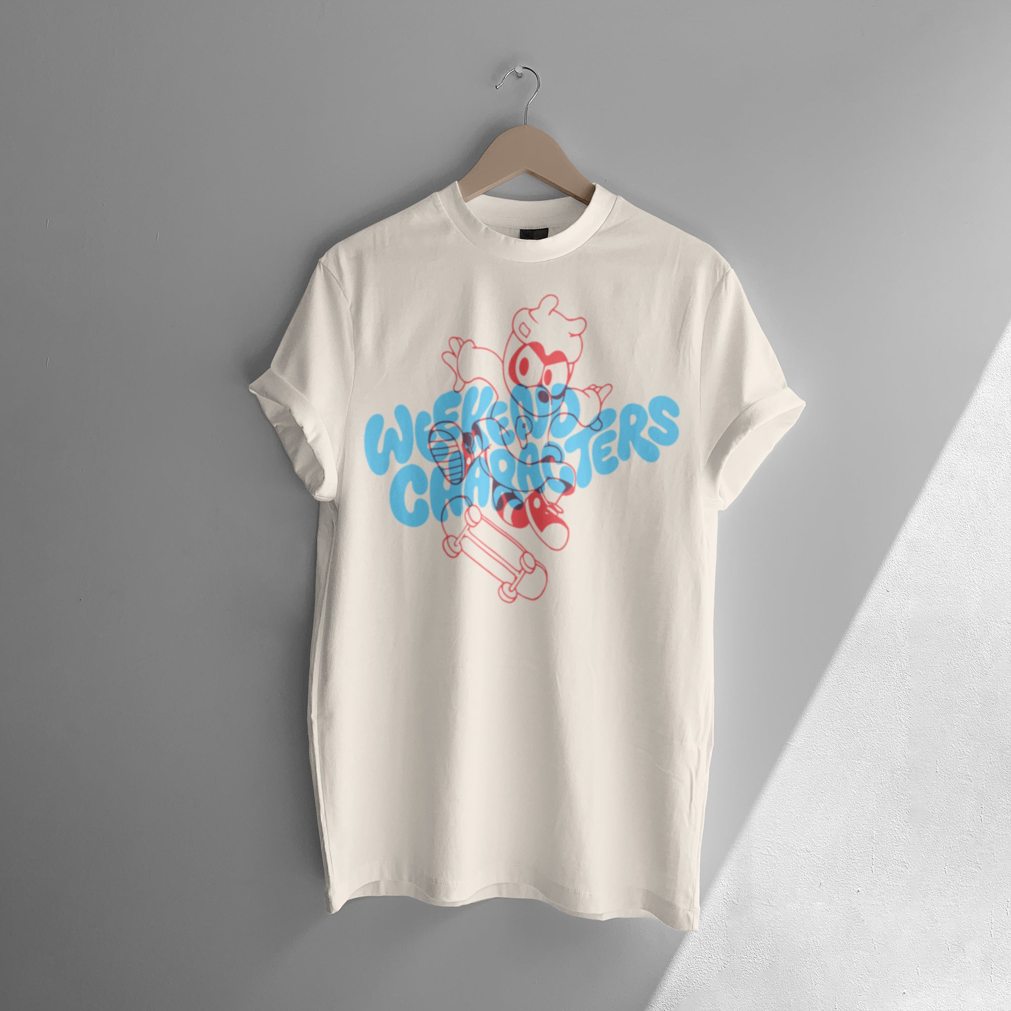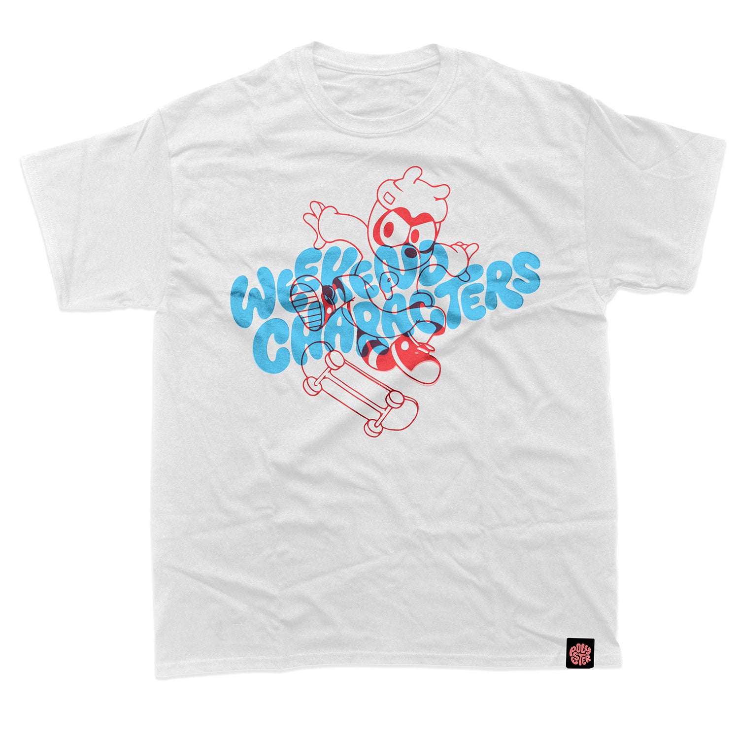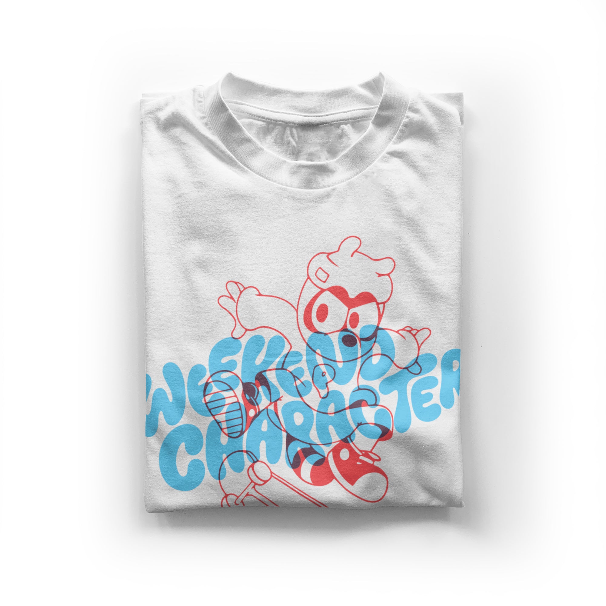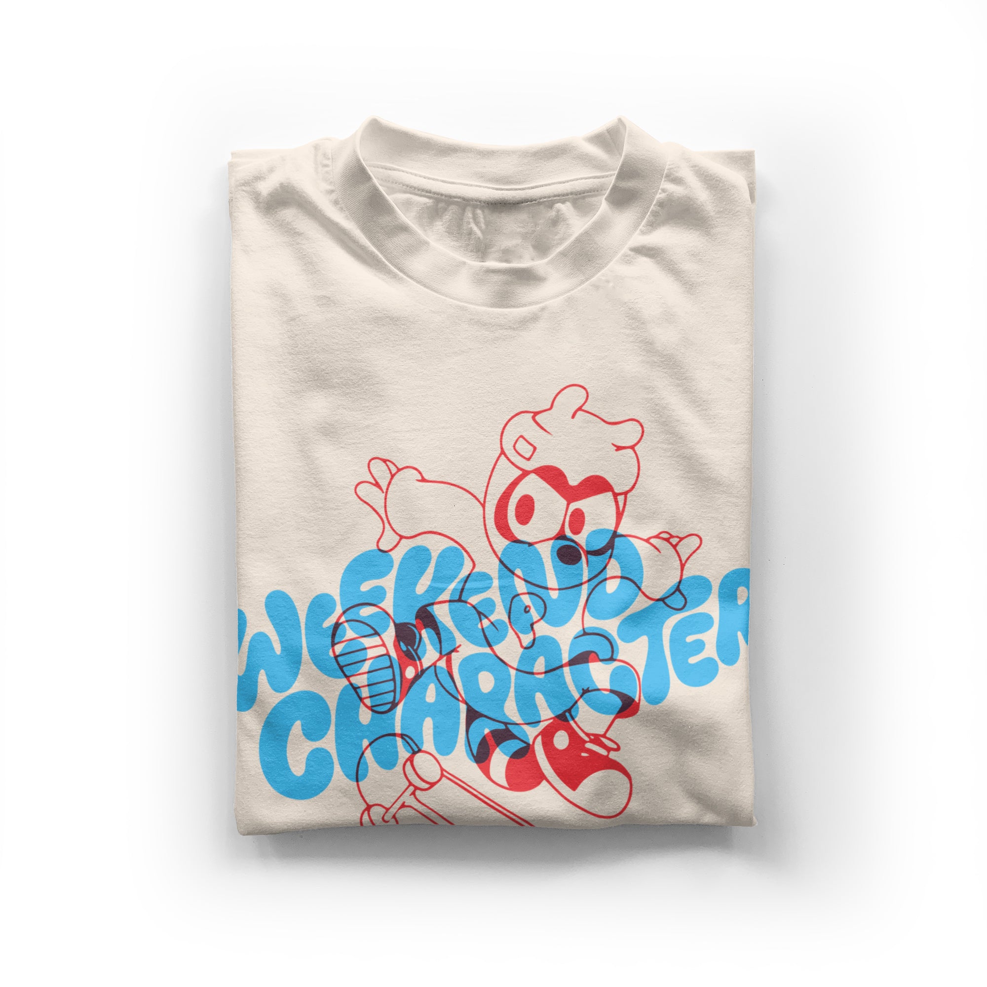 White and natural T-Shirt colour options with Weekend Character boarder.